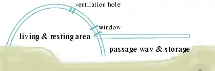 Der var 3 typer igloer af forskellig størrelse og til forskellige formål. Den mindste type blev brugt som midlertidigt opholdssted på jagtture uden det nærmeste distrikt. De var kun i brug i et par dage. Den næste størrelse kunne rumme en eller to familier i længere tid. De lå ofte sammen i en slags landsbyer. De største var midlertidige bygninger beregnet til særlige lejligheder, fester, trommedans eller møder af anden art. De bestod måske af flere huler, som indbyrdes var forbundet.