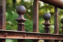 Hegn af jern med tydelige tegn på oxidering