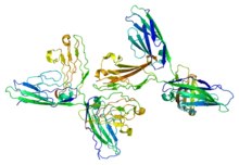 - To immunglobulin-domæner: CAR (coxsackievirus- og adenovirus-receptoren),[9] CD2, CD8, CD58/LFA-3, Intercellular adhesion molecule (ICAM), Killer-cell immunoglobulin-like receptor, SIGLEC (sialinsyre-bindende lektiner)