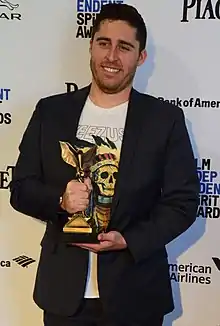Trey Edward Shults ved 2016 udgaven af Independent Spirit Awards med statuetten i hånden.