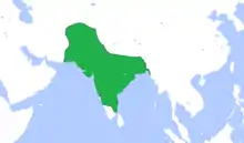 ![]() Område kontrolleret af Indien i mørkegrøn; Område som Indien gør krav på i lysegrøn.  | |