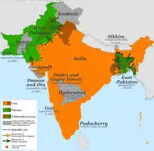 Grænserne for de to nye lande blev fastsat af Storbritannien, og det betød at det nye land Pakistan fik to dele, Øst- og Vestpakistan, der lå på hver sin side af det "nye" Indien. Delingen efter Mountbattenplanen søgte at tage hensyn til de kulturelle og religiøse forskelle blandt Indiens befolkning.