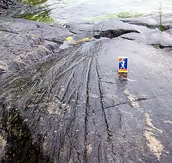 Skurestriber er spor efter gletsjerbevægelser, der findes på klippeflader. De kan afsløre, at et område engang har været dækket af indlandsis. Striberne er dannet af sten, der har været indefrosset i isen og har siddet fast på undersiden. Når isen har bevæget sig henover overfladen, har disse klippestykker skrabet furerne. Striberne fortæller derved også, i hvilken retning isen har bevæget sig. I de tilfælde, hvor skurestriber krydser hinanden, er de ikke dannet på samme tid, men er udtryk for, at isens drift har skiftet retning, eller der er tale om spor efter flere forskellige nedisninger.[9]