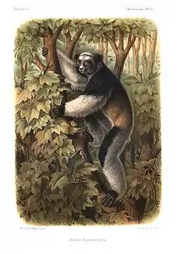Dyrets navn betyder "Se!" på malagasy. En opdagelsesrejsende hørte en indfødt pege på dyret og tog ordet som værende dyrets navn.