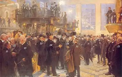 Planen blev aldrig fuldført, og Industriens Mænd blev udført i et format, der passede til Hagemanns lejlighed i Bredgade, men startskuddet var Krøyers billede Fra Københavns Børs (1895, Børsen). Børsbilledet blev Krøyers største arbejde rent arealmæssigt (254 x 409 cm) og indbragte maleren den store sum af 19.444 kr og 48 øre, idet en plads i forgrunden kostede de afbillede 500 kr, en mellemgrundsplads 300 og baggrunden 100 kr, mens grosserer S.W. Isberg fra handelshuset J.P. Suhr & Søn bidrog med 5.000 kr. Omtrent samtidig udførte Krøyer værket Et Møde i Videnskabernes Selskab (1897, Ny Carlsberg Glyptotek) af lignende karakter.