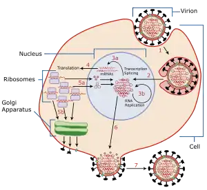 - Cros, J; Palese, P (september 2003). "Trafficking of viral genomic RNA into and out of the nucleus: influenza, Thogoto and Borna disease viruses". Virus Res. 95 (1-2): 3-12. doi:10.1016/S0168-1702(03)00159-X. PMID 12921991.