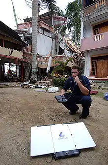 - Landmobilt udstyr, som oftest har antenner der skal stilles på jorden og pejles mod den satellit man ønsker at bruge. Der findes også varianter som er optimerede til at bruge på køretøjer i bevægelse.