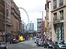 Ordet downtown bruges også til at beskrive inner cities eller centrum - primært i Nordamerika - af engelsktalende til at henvise til en bys kommercielle, kulturelle og ofte det historiske, politiske og geografiske hjerte, og er ofte sammenligneligt med dets centrale business-distrikt. På britisk engelsk bruges udtrykket "centrum" oftest, "centre-ville" på fransk, Stadtzentrum på tysk eller shìzhōngxīn (市中心) på kinesisk. De to udtryk bruges ligeligt fordelt i Canada. Et par amerikanske byer, såsom Philadelphia, bruger udtrykket "Center City".