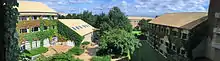 Panoramabillede over fire bygninger tilknyttet Institut for Matematik.