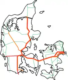 - Timedrift Københavns Lufthavn – København H – Odense – Fredericia – Århus H – Aalborg Lufthavn