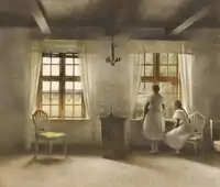 - Et interiør gengivet med stor nøjagtighed. Denne stil hed i England w:en:Interior portrait og i Tyskland w:de:Zimmerbilder.