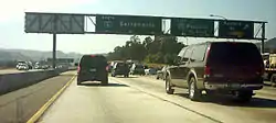 Omkring 1½ km vest for downtown Los Angeles møder I-5 Interstate Highway 10, U.S. Highway 101 og State Route 60 ved East Los Angeles Interchange, verdens mest befærdede motorvejskryds [4] med over 430.000 køretøjer, der passerer hver dag. Her skifter I-5 navn til Golden State Freeway og den fortsætter under dette navn gennem San Fernando Valley, via Newhall Pass gennem Santa Susana Mountains og Santa Clarita Valley. På en strækning af ca. 6 km deler de to vejbaner sig, og skifter endda plads, så den sydgående bane går på den østlige side af den nordgående. Herefter stiger vejen op til Tejon Pass i 1.275 meters højde, vejens næsthøjeste punkt i Tehachape Mountains. Herefter falder vejen igen omkring 700 meter over en strækning på 19 km frem til den sydlige del af San Joaquin Valley. Ca. 50 km syd for Bakersfield splittes vejen op. State Route 99 fortsætter til Bakersfield og Fresno, mens I-5 fortsætter mod nordvest gennem San Joaquin Valley. Ved Tracy øst for Oakland og San Francisco drejer vejen mod nord til Sacramento, Californiens hovedstad.