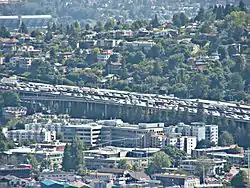 I begyndelsen af 1900-tallet blev det bygget "automobilveje" langs sporet. Bland andet fulgte Pacific Highway sporet på sin vej fra British Columbia til San Diego. En del af denne vej blev senere til U.S. Highway 99, hvoraf en stor del i dag udgør I-5.