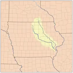 | Iowa Rivers afvandingsområde; Iowa River er grenen til venstre, CedarRiver den til højre | |