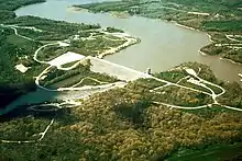 Coralville Reservoir og dæmning over Iowa River i nærheden af byen Coralville