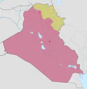 Efter yderligere storstilede offensiver i Irak i begyndelsen af juni 2014 overtog ISIL kontrollen med Mosul, den næstmest folkerige by i Irak, [12] den nærliggende by Tal Afar[13] og de fleste af de omkringliggende områder i Nineveh-provinsen.[14] ISIL erobrede også dele af Kirkuk- og Diyala-provinserne[15] samt Tikrit, det administrative centrum af Salahuddin-guvernementet, [16] med det ultimative mål at erobre Bagdad, den irakiske hovedstad.[17] ISIL mentes kun at have 2.000-3.000 kæmpende indtil Mosul-kampagnen, men i løbet af denne kampagne blev det klart, at dette tal var en grov undervurdering.[18] Der var også rapporter om, at en række sunnimuslimske grupper i Irak, som var imod den overvejende shiamuslimske regering, havde sluttet sig til ISIL og dermed forøget gruppens styrke.[19][20] Men kurderne, som er for det meste sunnier, i det nordøstlige Irak, var uvillige til at blive trukket ind i konflikten, og der var sammenstød i området mellem ISIL og den kurdiske peshmergaer.[21][22]