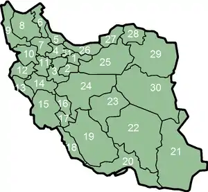 Iran består af 30 provinser (ostan-haa, ental: ostan):