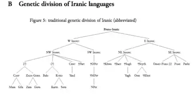 Genetic division of Iranic languages