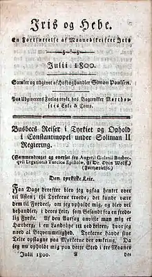Forsiden af et nummer af Iris og Hebe fra juli 1800.