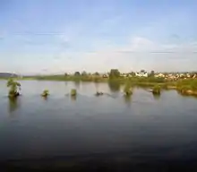 Irkut ved sommertid, set fra den transsibiriske jernbane udenfor Irkutsk nær dens sammenløb med Angara.