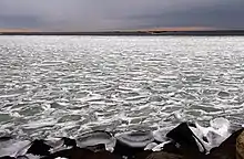 Is ved indgangen til Ystad havn 15. februar 2021.