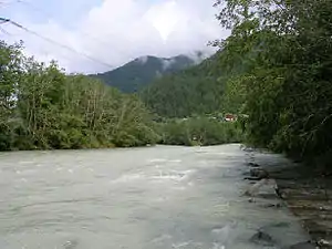 ![]() Tauernbachs (til højre) udmunding i Isel | |