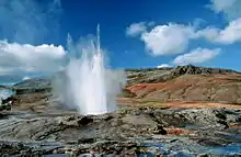 Island har mange gejsere, heriblandt Geysir, hvorfra ordet er afledt, samt den kendte Strokkur, som går i udbrud med 5-10 minutters mellemrum. Efter at have været slumrende i en periode begyndte Geysir igen at gå i udbrud efter en serie jordskælv i 2000. Dens aktivitetsniveau har siden taget lidt af og den bryder nu ud omkring et par gange dagligt.