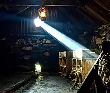 Inde i Arnol Blackhouse en traditionel hebridisk gård på Isle of Lewis sidst brugt i 1965.