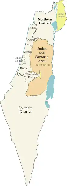 Der er seks hovedadministrerende distrikter i Israel, kendt på hebraisk som mehozot (מחוזות; ental: mahoz) og femten subdistrikter kendt som nafot (נפות; ental: nafa). Hvert subdistrikt er videre delt ind i naturlige regioner som der er 50 af.