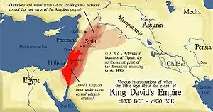Den sædvanlige bibelske frase brugt til at referere til territorierne som faktisk er bosat af israelitter er "fra Dan til Beersheba" (eller varianten "fra Beersheba til Dan"), som dukker op i de bibelske verser Dommerne 20,1, 1. Samuel 3,10, 2. Samuel 17,11, 2. Samuel 24,2, 2. Samuel 24,15, 1. Kongebog 4,25, 1. Krønikerne 21,2 og 2. Krønikerne 30,5.