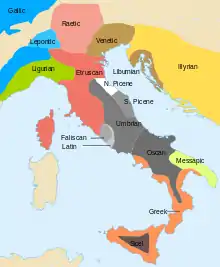 Uden for den specialiserede sproglige litteratur bruges udtrykket også til at beskrive de antikke folk i Italien som defineret i romertiden – herunder førromerske folk, såsom etruskerne og raetianerne, der ikke talte indoeuropæiske sprog.[1] En sådan brug er ikke korrekt inden for lingvistik, men anvendes af kilder som Encyclopædia Britannica, der hævder, at "Italien opnåede en forenet etnolingvistisk, politisk og kulturel fysiognomi først efter den romerske erobring, men dets ældste folk forblev forankret i navnene på regioner i det romerske Italien – Latium, Campania, Apulien, Bruttium, Lucania, Emilia Romagna, Samnium, Picenum, Umbrien, Etrurien, Venetien og Ligurien".[2]