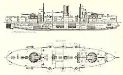 240 mm sammensat (compound) i vandlinjen 54 mm panserdæk af stål |