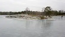 Holmen Fläsklösen i Järnlunden, en vinterdag.
