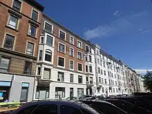 Nr. 7 og 9 er fra 1910 og gør sig gældende ved et for danske standarder usædvanligt indgangsparti: Bag et jugendstilsrækværk med blomster, er den tilbagetrukne hoveddør. Altanerne er også specielle i deres rå udformning: Afskærmningen er en plade med huller i. I kælderen boede en skomager, og skiltet ”Til Køkkentrappe” over kældertrappen er nu afdækket. Det viser, at der boede fine folk i opgangen. De fik bragt varer lige til døren af bude og andre tjenende ånder, som bestemt ikke gik op ad den fine hovedtrappe med deres snavsede træsko eller støvler.