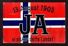 I 1905 blev Den svensk-norske union opløst efter mange års norsk kamp for lighed mellem de to stater, som det var blevet fastsat i Eidsvoll-forfatningen 1814. Det norske Stortings ensidige erklæring af unionens opløsning den 7. juni 1905 forårsagede volsomme svenske reaktioner, der bragte de to stater på randen af krig dette efterår. I Sverige blev de efterkrigs-konservative modarbejdet af Socialdemokraterne, hvis ledere Hjalmar Branting og Zeth Höglund talte for forsoning og fredelige løsninger af striden. De svenske socialister sang Ja, vi elsker dette landet for at vise deres støtte af nordmændenes ret til unionens opløsning.