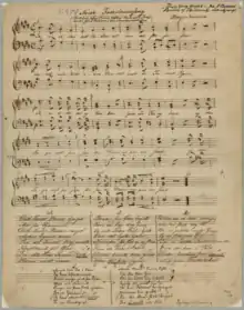 Ved sang gentages de to sidste linjer, og ved anden repetition gentages også de sidste to stavelser i linje 7. Tekst: Bjørnstjerne Bjørnson, melodi: Rikard Nordraak.