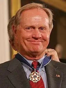 ![]() Nicklaus i 2005, hvor han får tildelt Presidential Medal of Freedom af George W. Bush.  | |