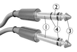 Det inderste ledende stykke på stikbenet (1 på billedet nede til højre) bruges så vidt muligt altid til stelforbindelsen, fordi visse fatninger for jackstik er indrettet sådan at denne del af stikket får kontakt til det kabinet, som apparatet med fatningen er indbygget i.