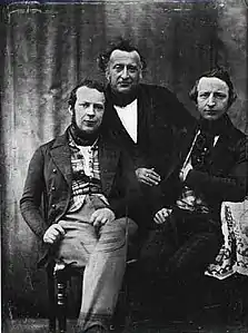 ![]() Jacob Erslev (t.h.) med broderen Emil og faderen Poul Erslev | |