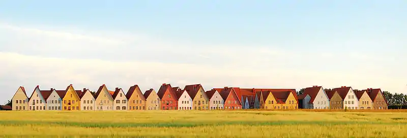Husene er kendetegnet ved de spidse og brat afsluttende tage, af snørklede gader og stræder og farverige bygningsfacader, der giver associationer til byer i Danmark, Nordtyskland og de baltiske lande, fx Vilnius og Riga.