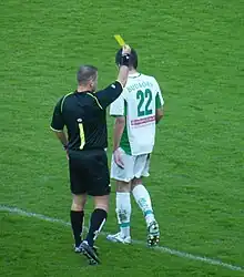 I jargon indenfor fodboldsubkulturen viser dommeren en "ostemad" (et gult kort) til spilleren, der får en advarsel.