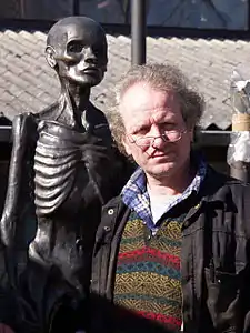 ![]() Jens Galschiøt foran en af de udhungrede drenge fra værket Hungermarchen | |