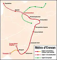 - "Yerevan authorities negotiating new metro line projects with banks". ArmeniaNow.com. 27. marts 2013. Arkiveret fra originalen 21. februar 2013. Hentet 4. august 2013.