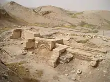 Fundamenter fra boområder afdækket ved Tell es-Sultan i Jeriko.