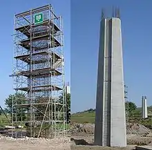 Betonpille til tysk motorvejsbro før og efter støbning på stedet.