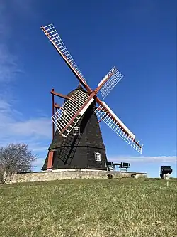 Ubby mølle. Herfra kan man se havet og pylonerne på Storebæltsbroen i horisonten. | |||||