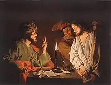 Derefter blev Jesus arresteret og ført til ypperstepræsterne, hvor det øverste Råd dømte ham til døden for gudsbespottelse, da Jesu på spørgsmålet om han var Kristus svarede: