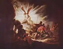 Alle evangelierne nævner også, at der var engle til stede, der forklarede, at Jesus var opstået. Matthæus nævner en engel, som havde sat sig på stenen. Denne engel forkyndte