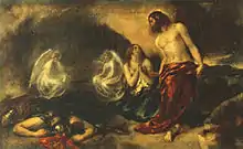 Ifølge Johannes møder Maria Magdalene Jesus i haven ved graven, efter at hun for anden gang har begivet sig derned for at undersøge graven og græde. Hun løber tilbage til disciplene og fortæller: