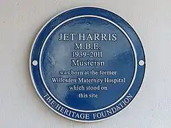 ![]() Mindeplade for Jet Harris | |